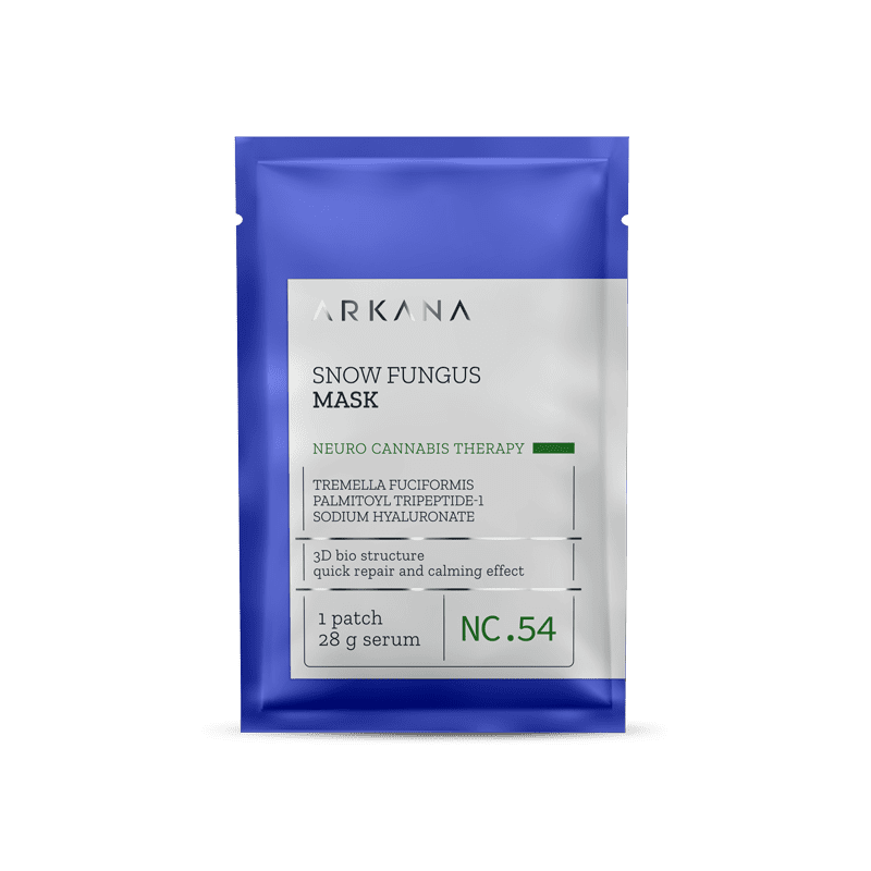 Specialised patch mask with Tremella fuciformis, PAL-GHK peptide, hyaluronic acid and vitamins E and C for calming and brightening effects.